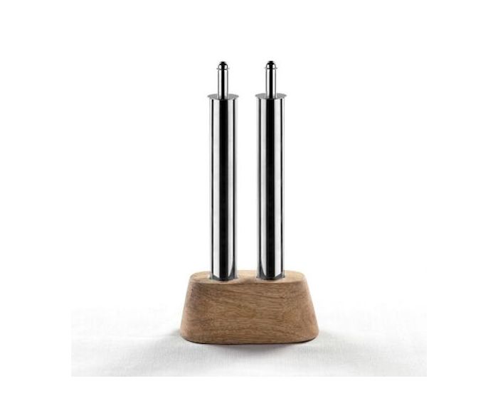 Met de roestvrijstalen olie- en azijnset van Olipac bewaart en serveert u olie en azijn op luxe wijze. De set wordt geleverd in een giftbox en beide delen staan op een houten onderzetter. Beide delen van de set hebben een inhoud van 80 ml. De schenktuitjes worden door een dopje afgesloten wanneer ze rechtop staan, zo behouden de olie en azijn langer hun smaak en voedingsstoffen.