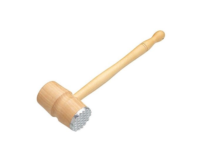 Dubbele ronde vlees hamer, gemaakt van massief beukenhout. Met een alluminium gekartelde zijde voor het verzachten van vlees zoals biefstuk. Een houten platte kant om delen van vlees en gevogelte te pletten. Beukenhout is afkomstig van duurzaam beheerde Europese bossen.